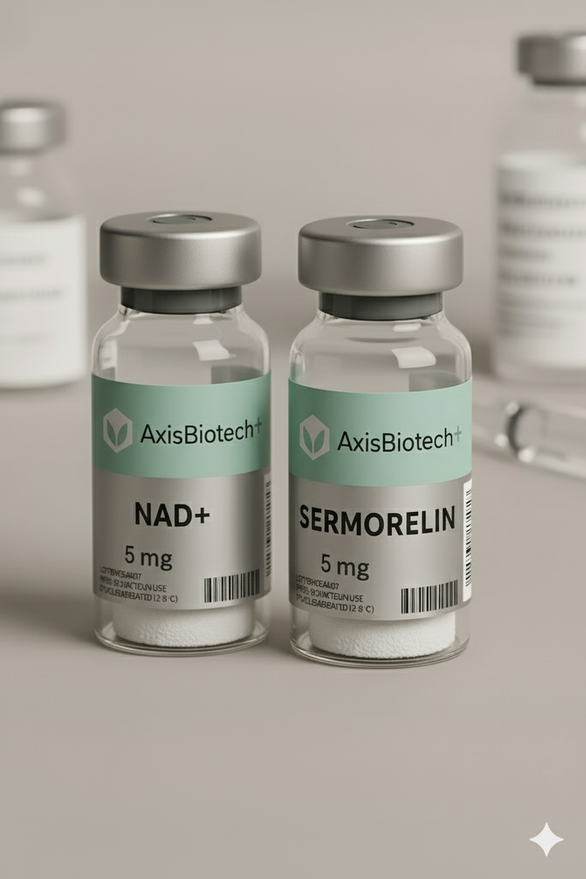 The Sermorelin / NAD+ stack is the perfect introduction to peptide therapy — a balanced, beginner-friendly combination designed to restore natural vitality, support cellular health, and optimize recovery from the ground up. Together, these two powerhouse compounds work synergistically to reignite your body’s natural growth hormone rhythm and enhance mitochondrial energy production, laying the foundation for total-body rejuvenation.